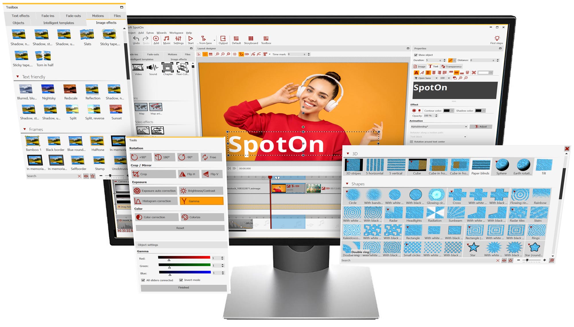 - You can freely design and express your own style. AquaSoft SpotOn gives you a lot of space for your creative ideas.