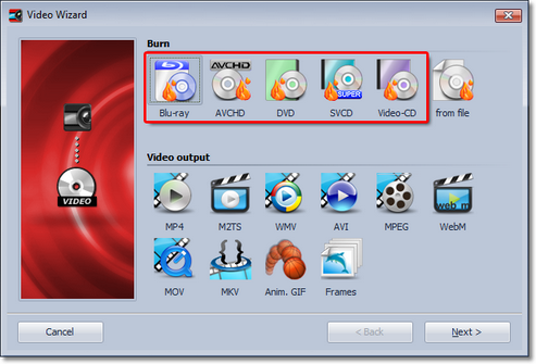 If you have a Blu-ray burner, use this option in order to directly burn a Blu-ray.