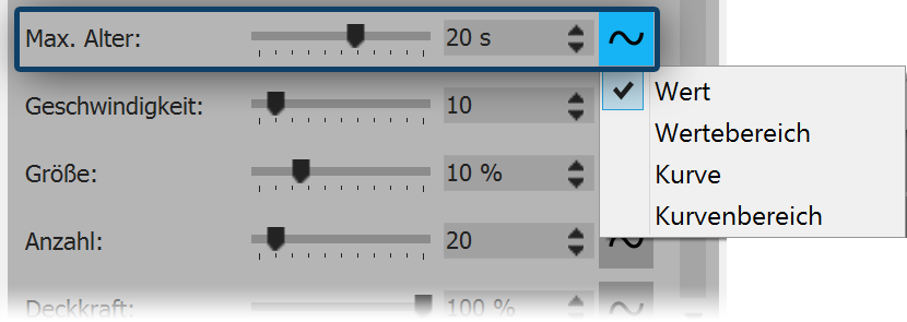 A particle may change over its lifetime. It can become larger or smaller, faster or slower, transparent or tight - other settings and settings in combination with one another are possible.